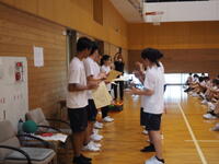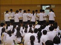 夏休み中の大会で記録を出した者や、夏休みに取り組んだ社会科選奨、書道に関する表彰などを行いました。